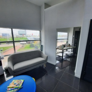 Рядом универсам «Европейский», Институт современных знаний, 19-ая городская поликлиника, Национальная библиотека. В здании имеется ресторан, а также торгово-развлекательный центр. Стоянка автомобилей организована у входа в здание..
